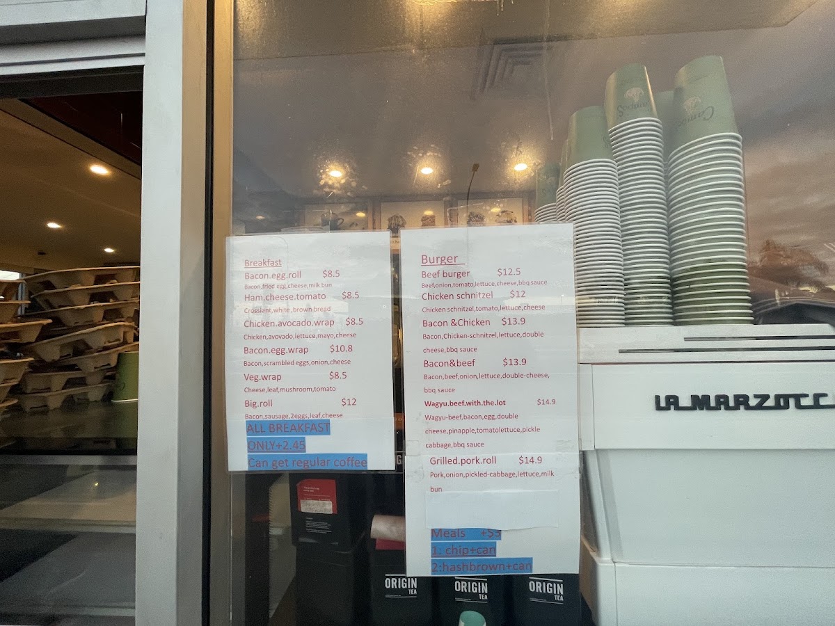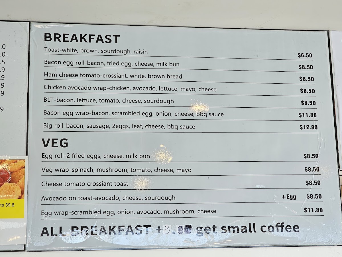 Overall, the menu provides a balanced combination of hot and cold beverages alongside substantial food options suitable for quick orders or casual light dining. It is appropriate for morning meals, snack times, and coffee breaks.